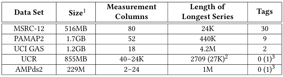 作者将大多数压缩数据存储在底层数据库中。时间序列表可以表示为:
