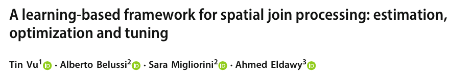 空间连接是地理空间应用中的一种关键操作,常用于基于多个数据集的地理信息进行数据分析。由于空间数据处理的固有复杂性,优化空间连接操作对于确保有效查询执行和最小化计算开销至关重要。本次为大家带来数据库领域顶级期刊VLDBJ 2024的文章《A learning-based framework for spatial join processing: estimation, optimization and tuning》。