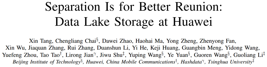 随着物联网、互联网技术的普及与发展,数据规模急剧增加,传统的数据存储架构面临着大数据集中存储、非结构化数据的存储与分析等新需求带来的挑战。面对这些新的企业数据需求,数据湖(Data Lake)的概念被提出,相应技术在近年得到快速发展。本次为大家带来的是CCF-A类顶级会议ICDE上的论文:《Separation Is for Better Reunion: Data Lake Storage at Huawei》。