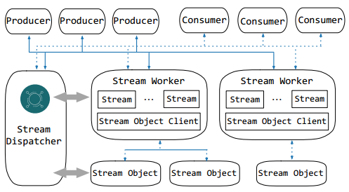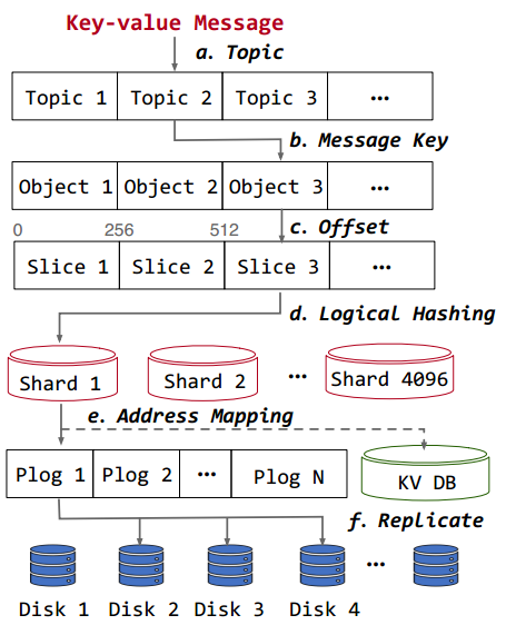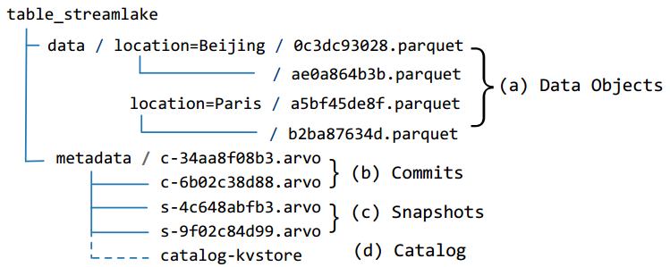 大数据时代,企业需要存储和分析的数据规模呈爆炸式增长,传统的数据库架构已经不再适用,需要一个更适应当今大数据场景的数据存储架构。数据仓库(Data Warehouse)是一个面向主题的、集成的、相对稳定的、反映历史变化的数据集合,目的是构建面向分析的集成化数据环境,为企业提供决策支持。数据仓库将不同来源的数据提取到单个统一的中央数据存储库中,有效解决了数据孤岛问题。但是随着数据规模的进一步增加,数据仓库也暴露出来一些缺陷。由于数据仓库严谨的数据建模要求,导致其不适合存储和分析非结构化数据,并且面对新的数据源和业务需求,需要耗费不少时间更新数据仓库。 近年来,数据湖逐渐兴起并快速发展,很多企业都开始使用数据湖,那么数据湖到底是什么呢?数据湖是一个以原始格式存储数据的系统,无需事先对数据进行结构化处理。数据湖的优势在于其支持存储任意格式的数据,并且这些数据都以原始形态保存,企业可以实现更丰富的业务操作。此外数据湖在数据读出时才创建Schema信息,这使得其可以更方便地收集和写入数据。华为公司通过对使用数据湖的合作客户进行业务洞察,发现他们大多需要对大量日志消息数据进行存储和处理,以支持他们的实时决策应用。为了满足这些客户的需求,在论文中华为公司设计了一个数据湖存储系统——StreamLake,具有高扩展性、高效率、可靠性和低成本等特性。具体来说,StreamLake引入了流对象作为消息流数据的存储抽象,以实现具有高扩展性和高可靠性的存储体系结构,并利用擦除编码和分层存储来节省存储成本。此外,对于表格数据,StreamLake通过表对象实现了支持ACID事务的LakeHouse,并通过元数据来加速计算引擎和存储引擎之间的数据访问效率。同时,StreamLake存储端设计了一个LakeBrain优化器来优化该存储架构下的查询性能和资源利用率。图1所展示的是StreamLake的总体结构图,主要由三层组成:存储层、数据服务层和数据访问层。存储层负责数据持久化,它由SSD和HDD数据存储池、高速数据交换和互连总线以及多种类型的存储语义抽象组成。(1)由SSD和HDD组成的数据存储池对存储的数据进行可靠的管理。存储池将磁盘上的物理存储空间划分为多个片,然后在不同服务器的磁盘上组织为逻辑单元,以保证数据冗余和负载均衡。(2)数据交换和互联总线通过直接内存访问、I/O优先级调度、智能分条聚合等技术加速总线上不同存储抽象的数据传输。此外,该总线支持不同接口共享单个数据块,减少了数据迁移的需要,从而节省存储空间。 (3) StreamLake设计了块,文件,流对象以及表对象等等存储抽象,以不同的语义实现对不同底层存储的访问接口,其中的流对象和表对象是专门为流数据和表数据的有效存储和访问而设计的。数据服务层提供了一组丰富的功能,以实现企业规模的高效数据管理。例如,分级存储服务根据分级策略在SSD和HDD存储池之间进行静态和动态的数据迁移,从而节省存储成本。复制业务定时向远端站点提供副本,用于备份和恢复。以及打通数据仓库和数据湖之间数据流通的LakeHouse框架,提高资源利用率和查询效率的LakeBrain优化器等。数据访问层处理用户请求,并且对用户请求进行身份验证和访问控制。StreamLake使用OceanStor分布式并行客户端,一个通用协议无关的客户端,提供更短但超快的IO路径。流对象是对消息流的存储抽象,通过对消息流的键值对分区,能够有效地支持大规模的键值消息流。流对象结构如图2所示,其组织为数据片的集合,每个数据片最多包含256条记录。写入的消息根据流对象的主题、键和偏移量追加到特定的片中。流对象提供了一个操作类,为流存储提供读写消息流的功能。首先根据主题、键和偏移量将消息分配给流对象片(图2a、2b、2c)。然后,利用分布式哈希表来确保负载均衡 (图2d),数据片将被均匀地分布到4096个逻辑碎片中。每个逻辑碎片都拥有由持久性日志PLog (图2e)管理的存储空间,PLog单元是OceanStor中多个持久化服务的集合,控制多个磁盘上固定数量的存储空间。当接收到消息时,PLog单元将消息复制到多个磁盘上,实现冗余(图2f)。 表对象是对数据表的存储抽象,以支持对表的操作,从而实现更有效的数据存储和管理。就像LakeHouse系统[1]表对象存储在data目录下的Parquet文件中,子目录名表示其分区范围。每个Parquet文件中的数据对象被组织为行组,并以列格式存储,以便进行高效的分析。元数据跟踪表、模式和事务提交等的文件路径,它们被组织为三个级别:提交、快照和目录(3b、3c、3d)所示。Ø提交是包含文件级元数据和统计信息的Arvo文件。每次数据的插入、更新和删除操作都会生成一个新的提交文件,以记录数据对象文件的更改。Ø快照是索引文件,用于索引指定时间段内有效的提交文件。快照还提供快照级别的隔离,以支持乐观并发控制。此外,快照还监视所有提交的过期, 通过保留旧的提交和快照,然后使用时间戳查找相应的快照和提交,以访问历史数据。Ø编目描述表对象,包含各项配置数据,如表ID、目录路径、数据库模式、快照描述、修改时间戳等。 数据服务层中的数据处理服务提供了一个全面的企业级数据湖存储解决方案,以有效地大规模存储和处理日志消息。StreamLake服务包括用于消息流的流存储系统和用于高效表数据处理的LakeHouse格式读/写功能。