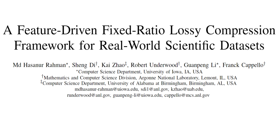 海量科学数据正面临着存储与管理难题,这使得有损压缩算法得到了广泛关注。现有的有损压缩算法主要是以误差控制为驱动的,例如事先规定误差边界再进行压缩;然而,由于存储、网络资源等限制,需要在有限的空间(目标压缩率)下尽可能降低数据的失真情况,而前者无法直接适用于这类需求。本次为大家带来数据库领域顶级会议ICDE 2023的论文:《A Feature-Driven Fixed-Ratio Lossy Compression Framework for Real-World Scientific Datasets》,论文提出了一种可固定压缩率的有损压缩框架,具有低计算开销、压缩器无关、数据特征驱动等特点。