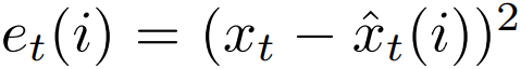 表示预测误差,根据误差分配各个模型的权重。但静态的et(i)无法对时间高敏感。对于这个问题,文章引入了一个带有衰减因子δ的时变预测距离。设e(i)=(e1(i),e2(i),...,et(i)),预测距离为