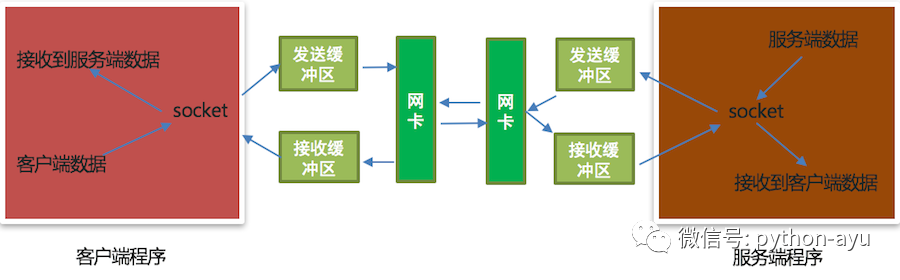 不是,要想发数据,必须得通过网卡发送数据,应用程序是无法直接通过网卡发送数据的,它需要调用操作系统接口,也就是说,应用程序把发送的数据先写入到发送缓冲区(内存中的一片空间),再由操作系统控制网卡把发送缓冲区的数据发送给服务端网卡 。