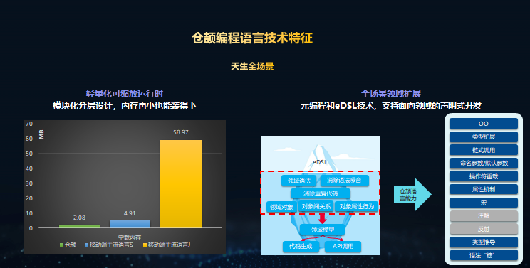 “仓颉”是一款面向全场景应用开发的现代编程语言,通过现代语言特性的集成、全方位的编译优化和运行时实现、以及开箱即用的 IDE 工具链支持,为开发者打造友好开发体验和卓越程序性能。