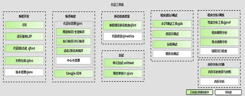 此外,仓颉还支持面向应用开发的一系列工具链,包括语言服务(高亮、联想)、调试(跨语言调试、线程级可视化调试)、静态检查、性能分析、包管理、文档生成、Mock 工具、测试框架、覆盖率工具、Fuzz 工具以及智能辅助编程工具,进一步提升软件开发体验以及效率。