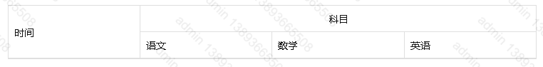 <tr><td rowspan="2">时间</td><td colspan="3" style="text-align:center">科目</td></tr><tr><td>语文</td><td>数学</td><td>英语</td></tr>