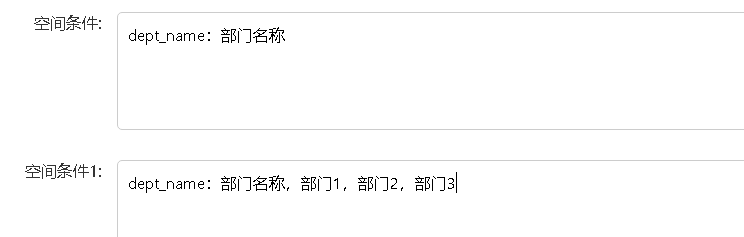 执行sql | {{starttime}} 选择一或两个时间参数传第一个值 {{endtime}} 选择两个时间参数传第二值 {{hashusername}} 自动转化为用户的cn_name的hash,支持数据可用不可见 {{zhname}}自动转化为用户的中文名称 {{username}}自动转化为用户的cn_name {{deptcode}}自动转化为用户的部门编码 {{companyname}}自动转化为用户的g公司名称 {{nename}}根据空间条件进行替换 {{nename1}}根据空间条件1进行替换 {{nename2}}根据空间条件2进行替换 {{nename3}}根据空间条件3进行替换 {{nename4}}根据空间条件4进行替换 |
