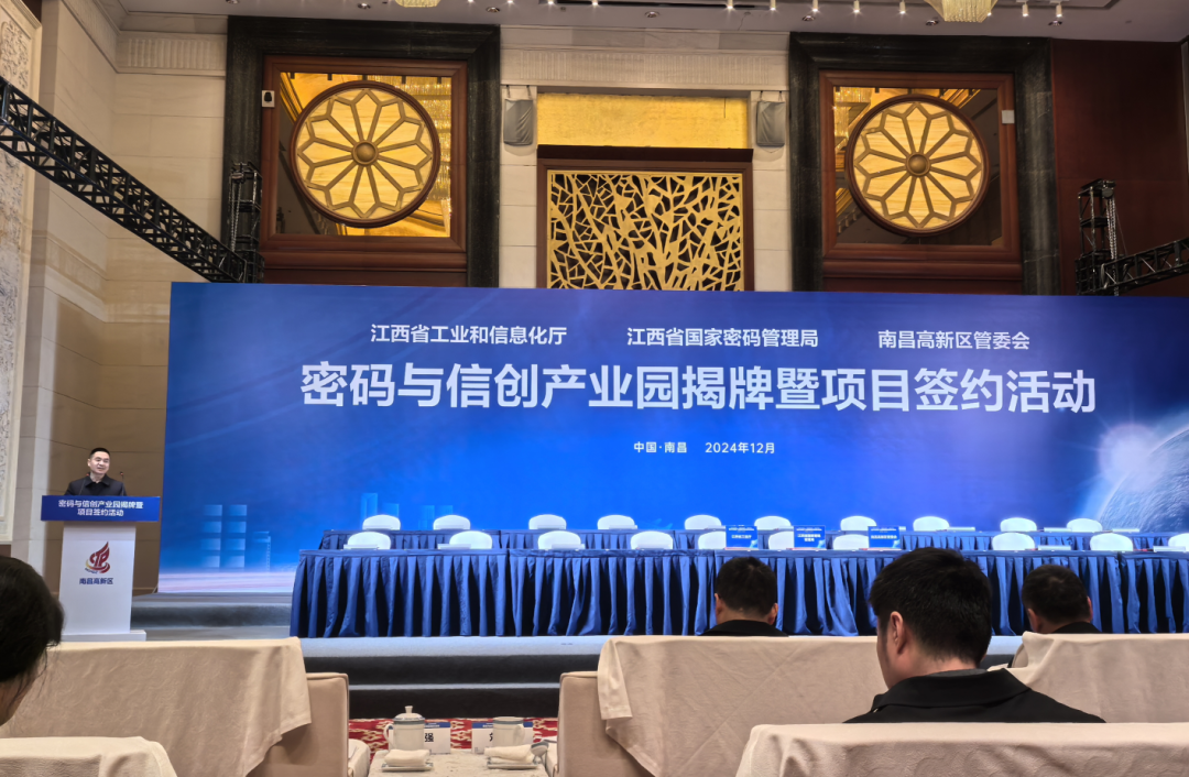 12月18日,江西省首个密码与信创产业园落户南昌高新区。产业园由省国家密码管理局、省工信厅指导共建,依托南昌数谷产业园数字产业链优势,持续推进江西省密码与信创产业集群发展、做大做强,助力江西省数字经济高质量发展。江西省国家密码管理局局长廖建建,省工信厅副厅长瞿小华出席,南昌市委常委、市委秘书长赵捷出席并致辞。
