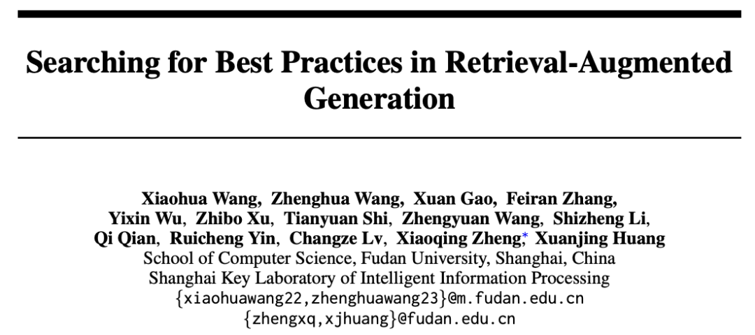 今天分享的是复旦大学和智能信息处理上海市重点实验室联合发表的一篇文章:实现检索增强生成(RAG)的最佳实践