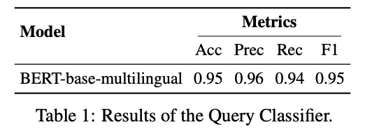 并非所有查询都需要检索增强,因为大型语言模型(LLMs)本身具备一定的能力。虽然RAG(检索增强生成)可以提高信息的准确性和减少幻觉,但频繁的检索会增加响应时间。因此,我们首先对查询进行分类,以确定是否需要检索。需要检索的查询将通过RAG模块处理;其他查询则直接由LLMs处理。在实现时,选择了BERT-base-multilingual-cased作为分类器。
