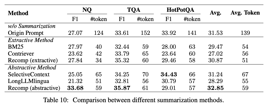 摘要模块:尽管移除摘要模块可以在降低延迟的同时实现相似的结果,但Recomp表现出了卓越的性能,仍是首选方案,特别是在解决生成器的最大长度限制时表现突出。在对响应时间敏感的应用场景中,移除摘要模块可以有效减少响应时间。