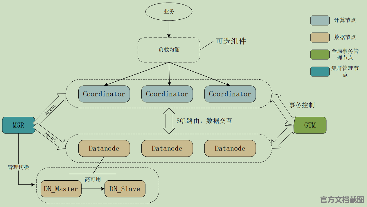 节点(GTM)和集群管理节点(MGR),共 4 个组成部分。