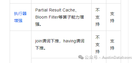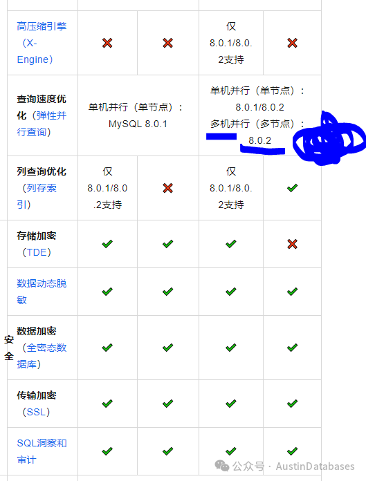 另外还有一些事8.02支持的特殊功能8.01不支持,如果你有强需求,就一定要选择8.02,那些下面图上写支持的都是8.02 ,上去复杂的查询的性能一定是8.02在同配置上更好,更疯狂。(小声点说,8.02的性能优化和性能加持,比8.01强多了)