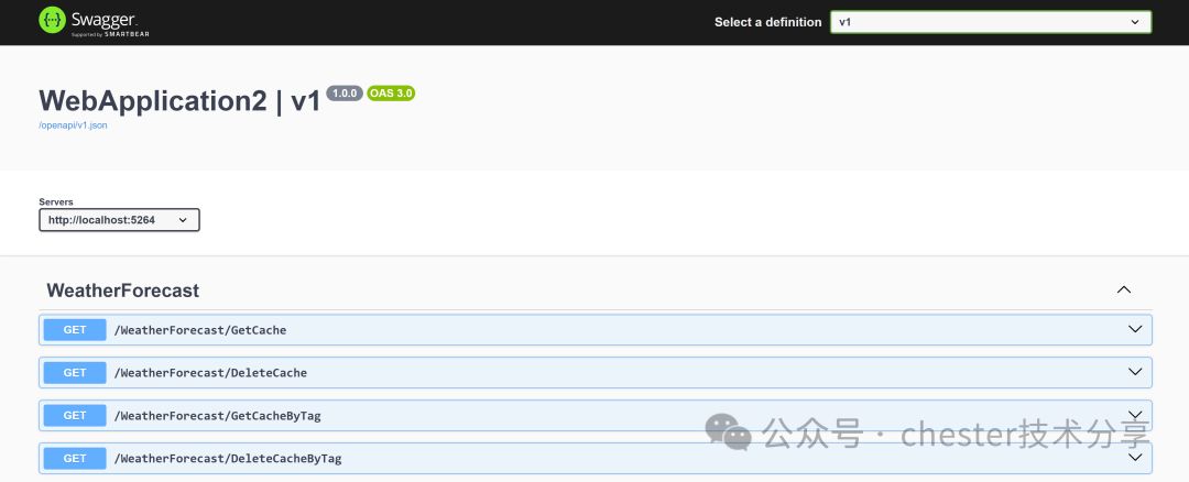 这将 OpenAPI 文档映射到默认路径 openapi/v1.json。
