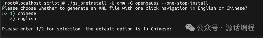 目录,执行命令 ./gs_preinstall -U omm -G opengauss --one-stop-install