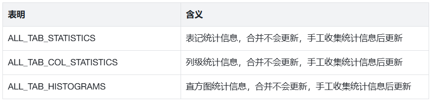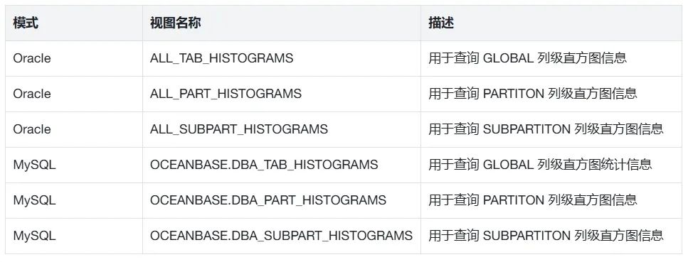 每日合并不再收集统计信息; Oracle 和 MySQL 租户都可以使用 DBMS_STATS 系统包收集统计信息,与 analyze 相比参数更多,使用更灵活,更推荐使用 DBMS_STATS 系统包来收集统计信息; 通过 JOB 每天定时收集统计信息(数据修改比例超过 10% 的表/分区才会收集,会收集存在数据倾斜列的直方图)。