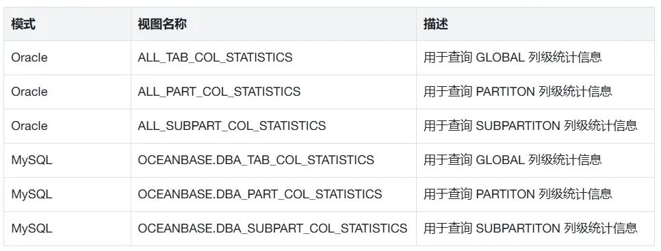 查看手工收集的统计信息;Oracle 租户通过 ALL_TAB_STATISTICS