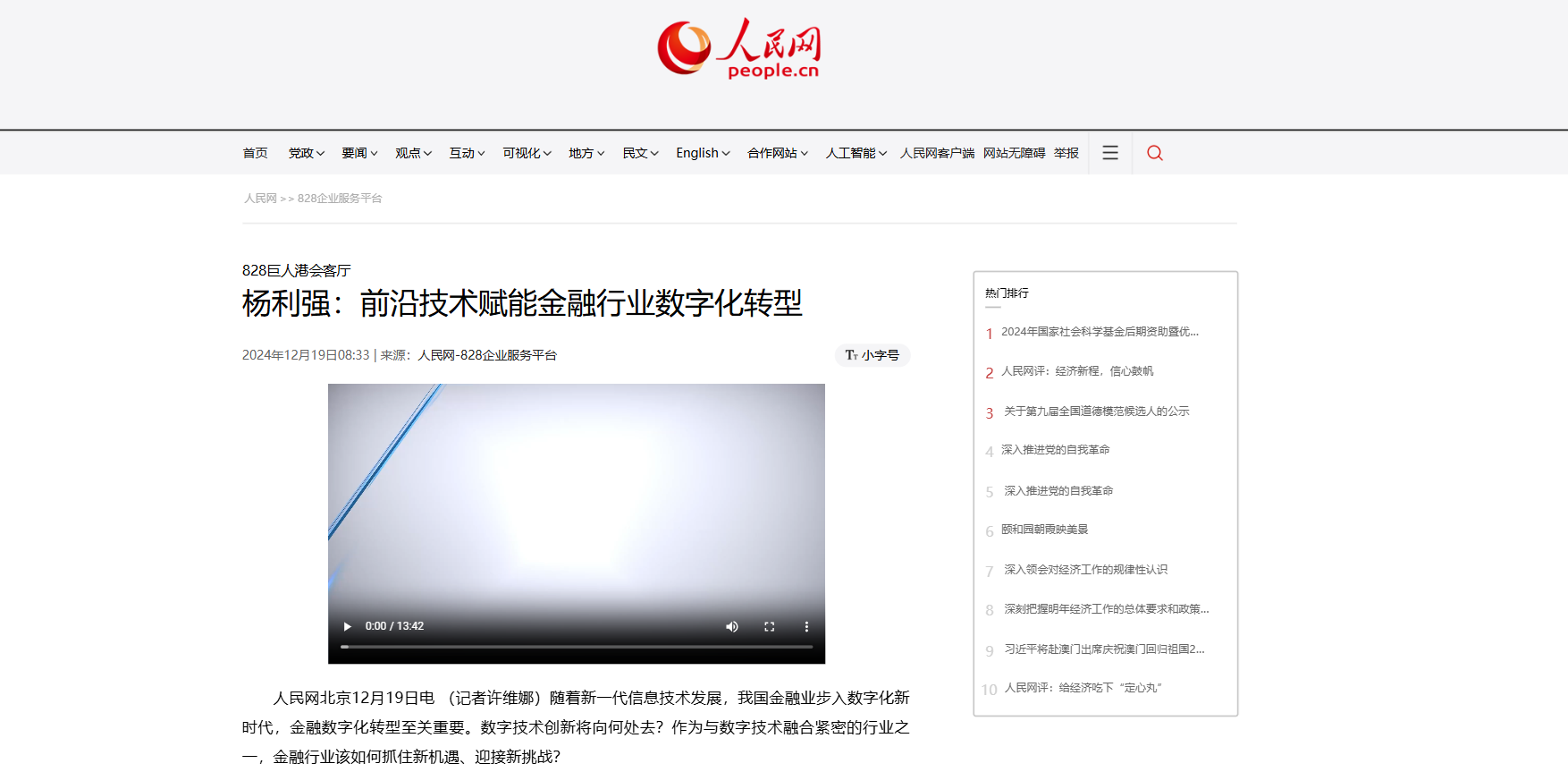 近日,科蓝软件首席信息官兼战略规划部总经理杨利强做客由人民网主办的“828 巨人港会客厅”,就当前金融科技领域的核心议题进行了深入探讨。在讨论新一代信息技术发展对我国金融业影响时,人民网指出,金融业已步入数字化新时代,金融数字化转型至关重要。双方一并探讨了在新时代下,数字技术创新的方向及金融行业如何抓住新机遇、迎接新挑战。