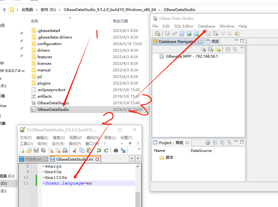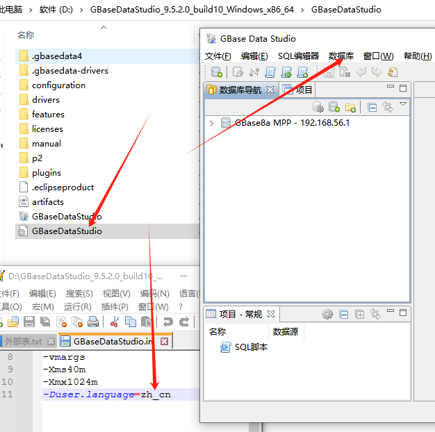 打开GBaseDataStudio目录下的GBaseDataStudio.init文件,在最底部增加参数