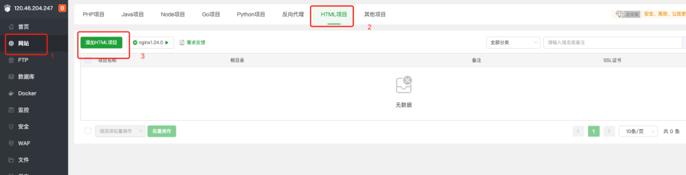 如下图所示添加 html 项目站点
