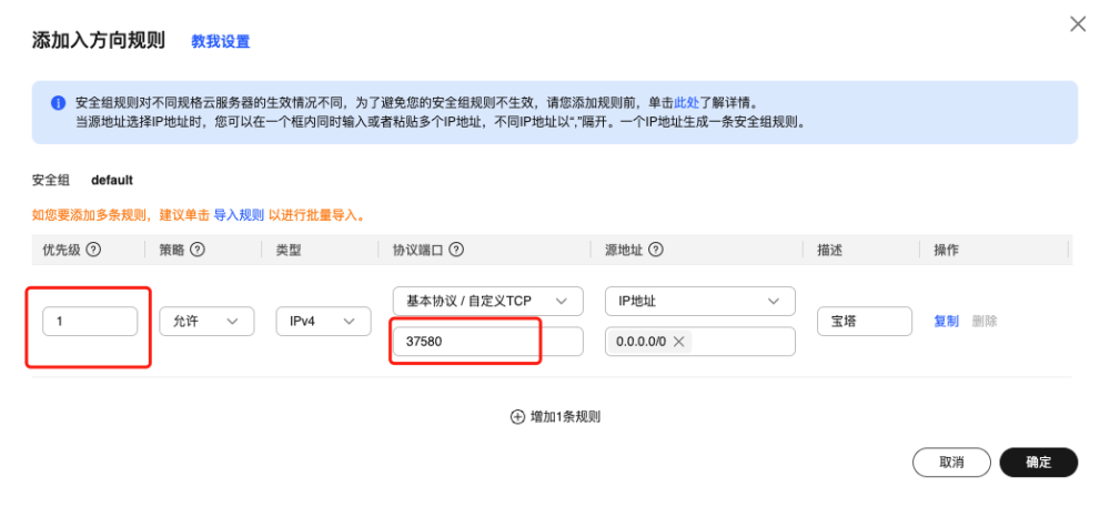 3. 点击添加规则,并进行相关配置,如下图所示