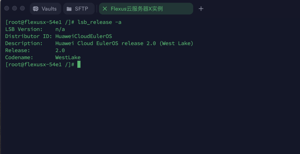 从镜像信息中我们可以看到我们使用的镜像是 Huawei Cloud EulerOS, 本次测评也是需要在该镜像下进行。