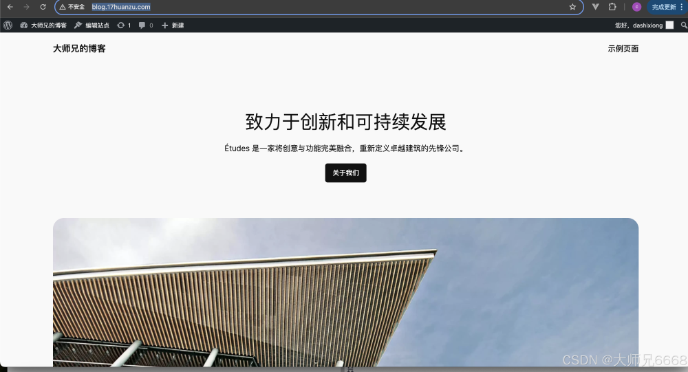 直接访问前台站点,就是你解析的域名(我这里是 blog.17huanzu.com)查看效果。