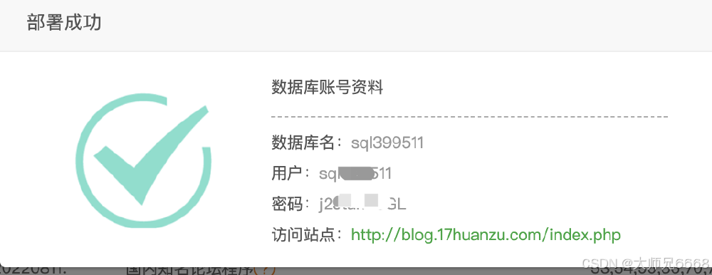 系统会下载文件一小会儿,大概 1 分钟左右,然后提示“部署成功”。按照提示访问站点!