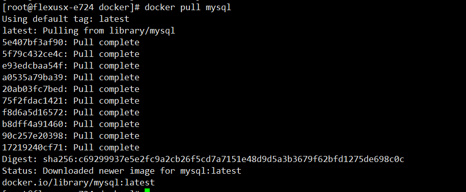 成功启动 Docker 后,接下来可以拉取所需的镜像,例如 MySQL 镜像:
