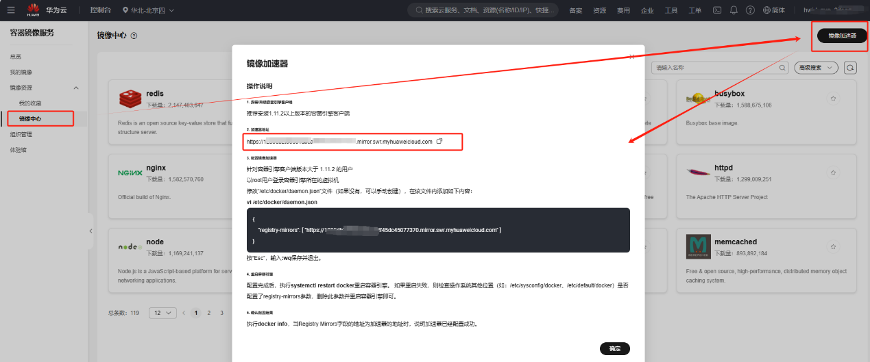 在华为云服务器上使用 Docker 时,推荐配置镜像加速器以提升镜像拉取速度。华为云提供了镜像加速器服务,地址为https://console.huaweicloud.com/swr/?region=cn-north-4#/swr/mirror,