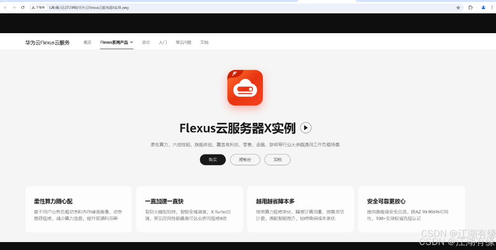 进入华为云 Flexus 云服务的控制台,选择 Flexus 云服务器 X 实例,可以看到已经正在运行的 Flexus 云服务器 X 实例。