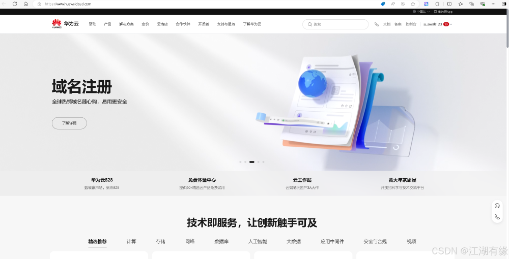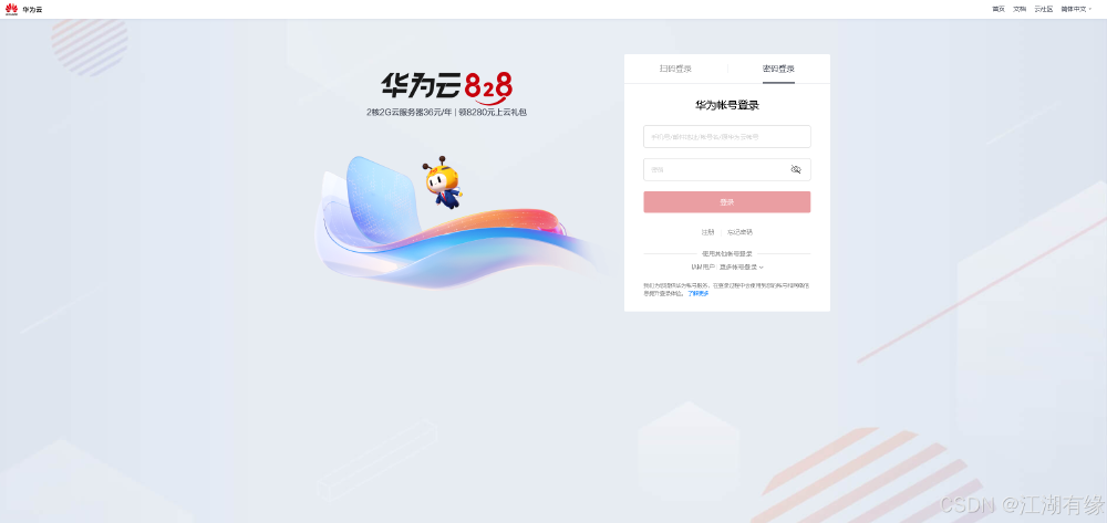 进入华为云官网:https://activity.huaweicloud.com/,登录自己的华为云账号,进入华为云首页。