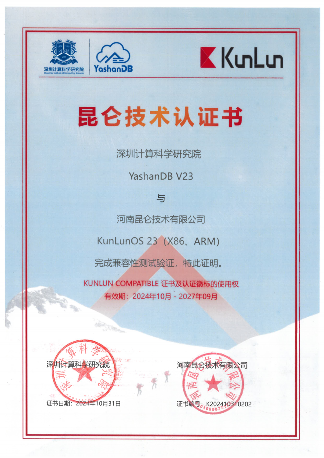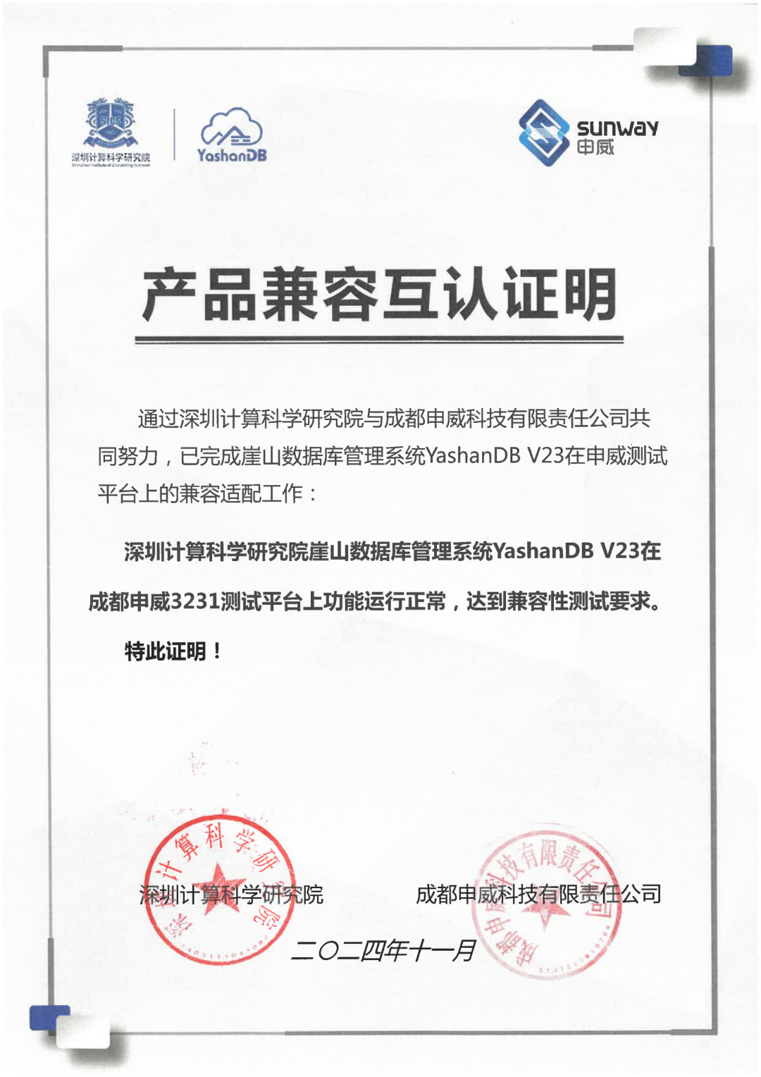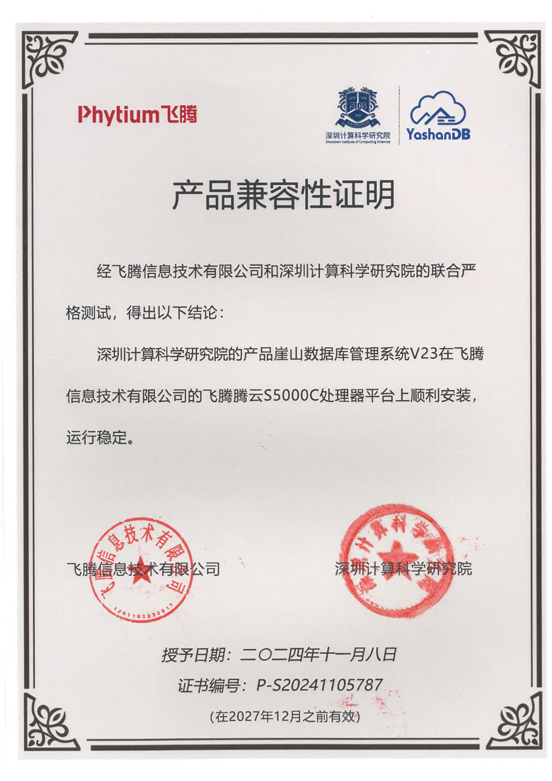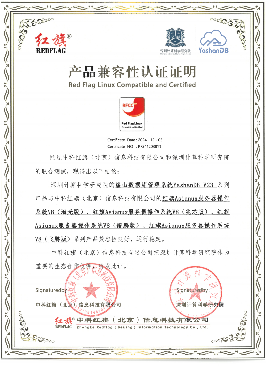 近期,深圳计算科学研究院崖山数据库系统YashanDB与飞腾、申威、麒麟、兆芯、北京凝思、超聚变、河南昆仑、麒麟信安、中科红旗、北京长擎等基础软硬件厂商多个产品完成兼容互认,实现了与国产基础软硬件广泛兼容,共同促进我国基础软硬件生态发展,共筑更坚实的数据安全城墙。