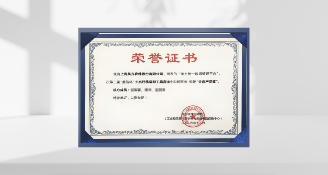 2024年12月25日,北京——在2024“鼎信杯”信息技术发展论坛上,对第三届“鼎信杯”大赛中涌现的杰出成果进行表彰。其中,英方统一数据管理平台在迁移适配工具赛道中脱颖而出,荣获金鼎产品奖。