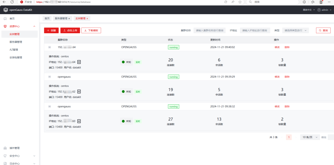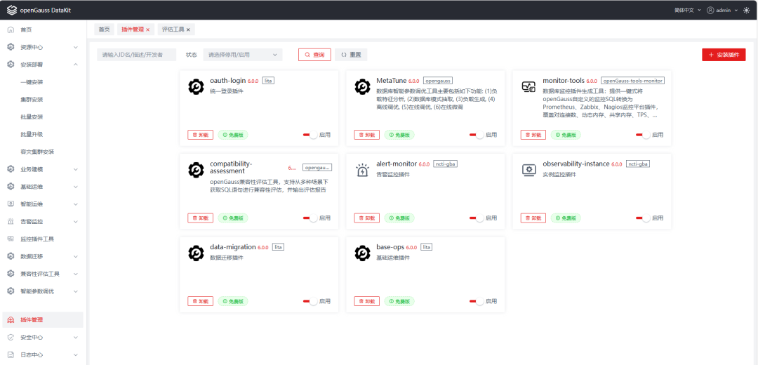 安装插件后,可以看到左边的菜单增加了安装部署、基础运维、智能运维、告警、数据迁移、兼容性评估、智能性参数调优等内容,完全满足日常运维需要。