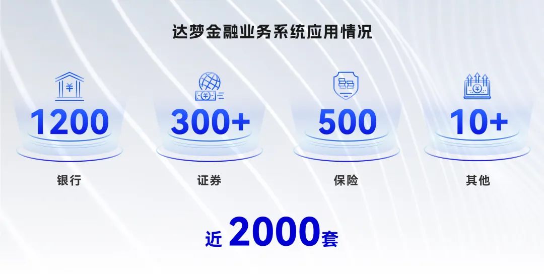 截至2024年12月底,达梦上线的金融业务系统近2000套。其中,【银行】业务系统近1200套。【证券】业务系统300+套。【保险】业务系统近500套,【其他金融机构】业务系统10余套。