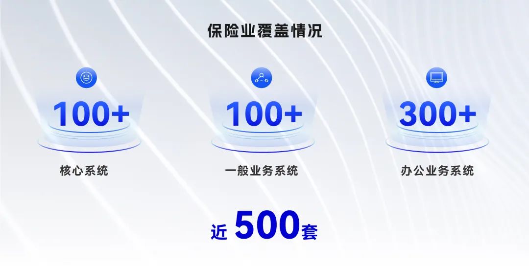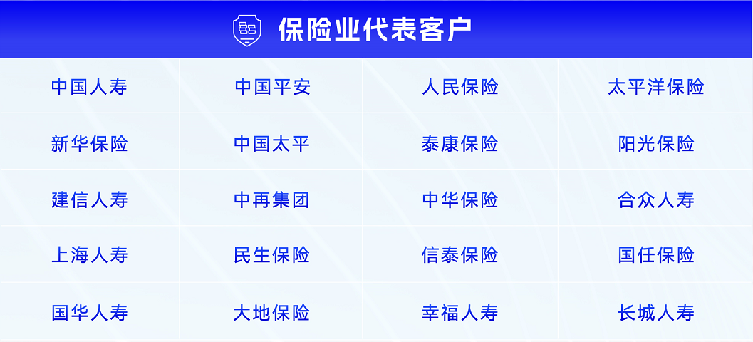 应用于中国人寿、人民保险、太平洋保险、太平保险、泰康保险、新华人寿、建信人寿等多个重点保险单位,覆盖CMDS系统、企业年金系统、互联网核心系统、新商保核心系统、养老企业年金系统等多个核心业务系统。