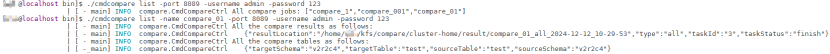 ./cmdcompare list -name compare_01 -port 8089 -username admin -password 123 | 查询校验任务详细信息,校验的表及执行结果情况 |