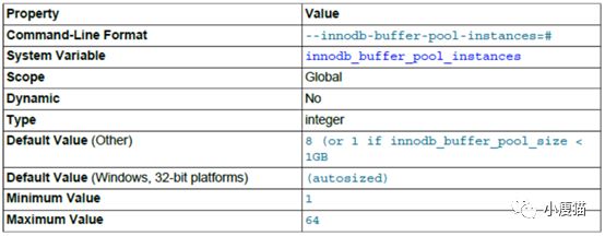 该配置只有在innodb_buffer_pool_size大于1G的时候才会生效。为了得到更好的效率,设置合理的个数使每个缓冲池实例大小大于1G。