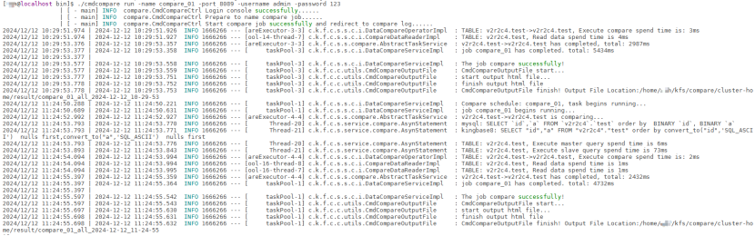 5) 执行命令创建并执行任务名为“compare_01”的详细校验任务