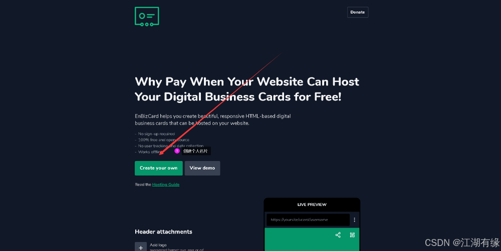 点击“Create your own”,开始创建名片。