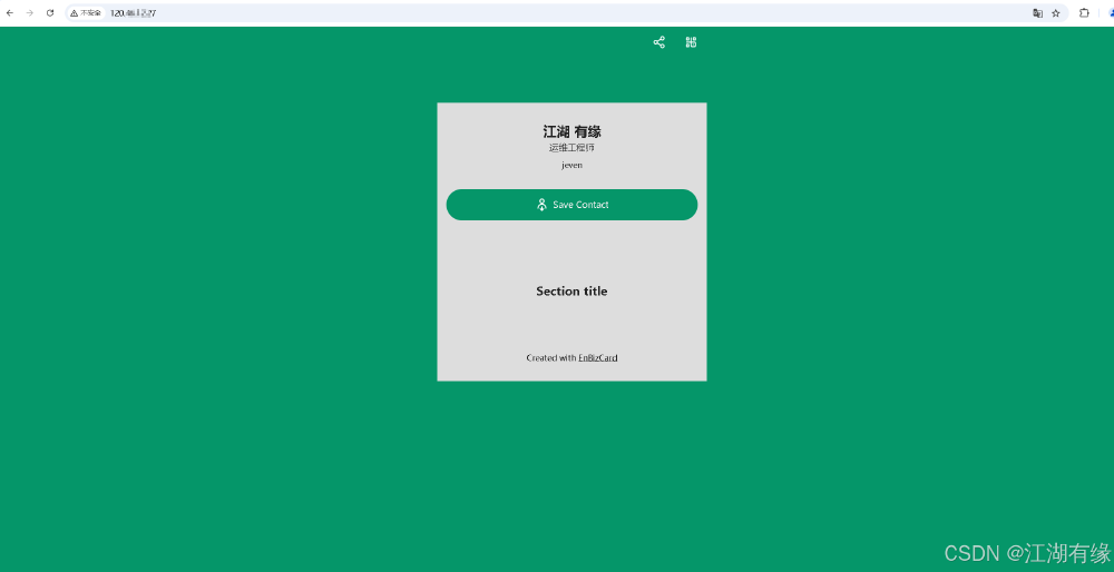 浏览器地址:http://弹性公网 IP 地址/,将 IP 替换为自己华为云 Flexus 云服务器 X 实例的弹性公网 IP 地址即可。将此在线个人名片链接发送给其他人浏览器打开即可,可以打造属于自己的个人电子名片。