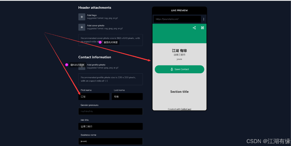 填写名片信息,自定义填写即可。