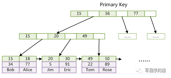 MySQL中,InnoDB存储引擎的索引使用B+数数据结构实现,具体结构如下: