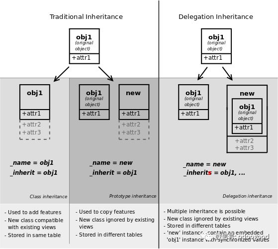 第二类继承机制(委托)允许将当前模型的每个记录无缝链接到父模型中的记录,并提供对父记录字段的透明访问。