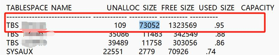当下查询该表空间使用率,发先该表空间还剩余73GB 那为什么会报表空间不足呢?