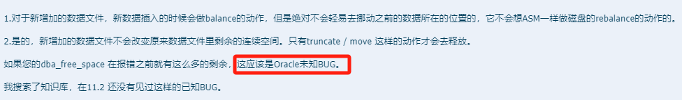 后续又和oracle support 系统梳理了问题时间的ASH的sql记录,考虑到被insert extend的blocks即使rollback 也不会被释放,也没有查询到类似有CTAS(create table as)等异常操作