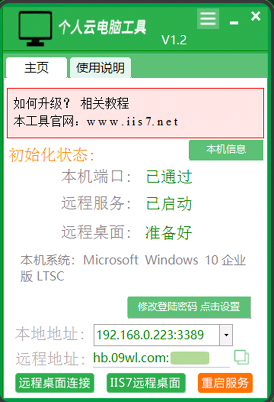 首先,您需要访问电脑A下载“个人云电脑工具”,然后打开个人云电脑,得到远程地址,如图所示: