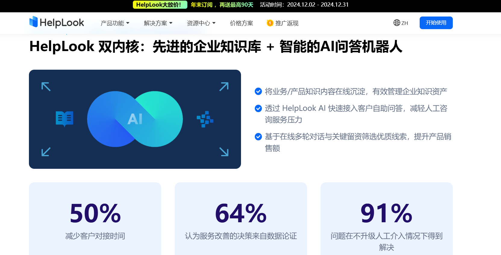 定价:HelpLook提供多种定价方案,以满足不同规模企业的需求,可以在线免费搭建试用体验。