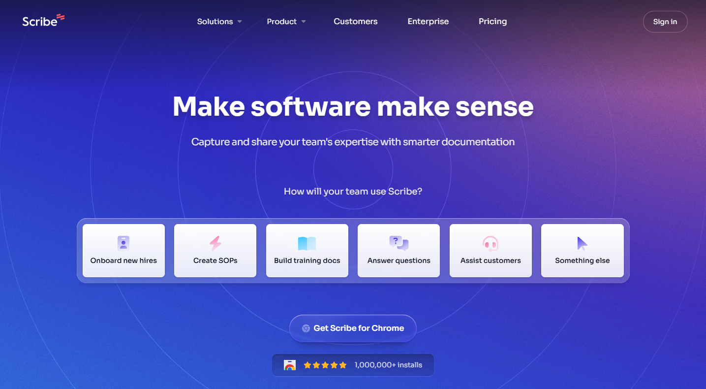 Scribe是一款SOP创建软件,专为销售、客户成功管理(CSM)、人力资源(HR)和信息技术(IT)团队设计,可帮助他们即时且有效地记录和分享流程。